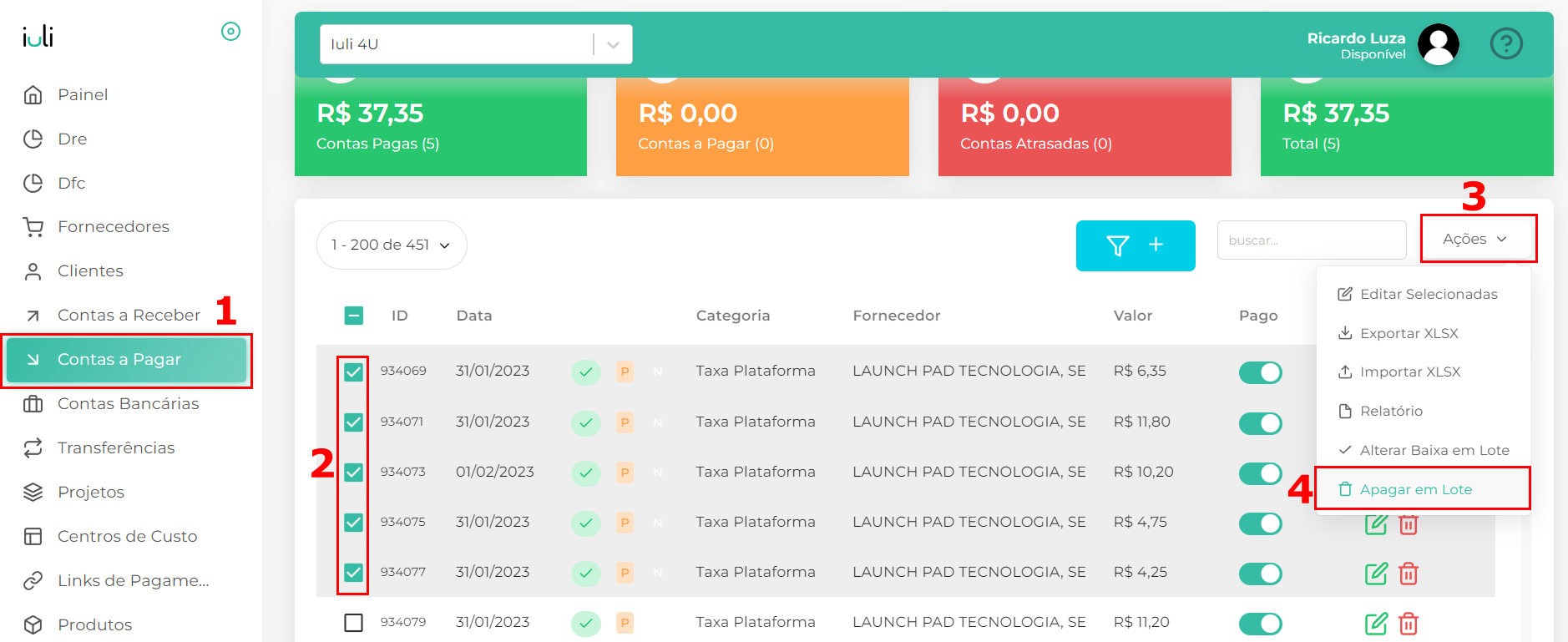 1.No menu lateral clique em Contas a Pagar.