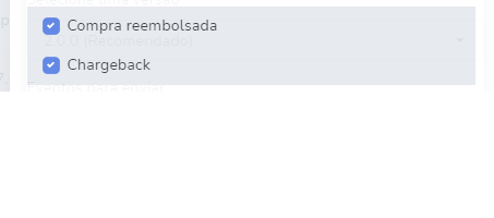 Eventos para Enviar: Selecione apenas as opções Compra Reembolsada e Chargeback