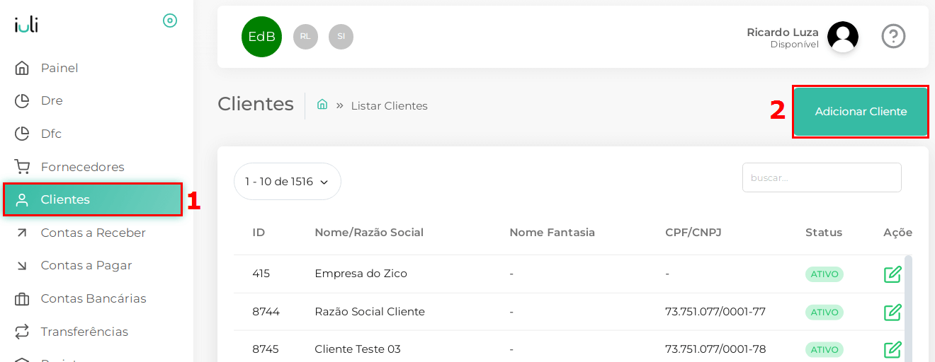 1.No menu lateral clique em Clientes.