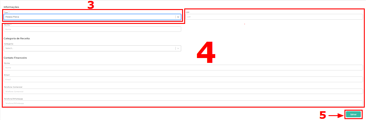 3.No campo Tipo selecione se o cliente é Pessoa Física ou Pessoa Jurídica.