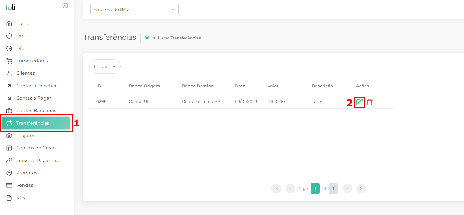 2.Clique no botão ?Editar Transferência? no lado direito da transferência que deseja editar.
