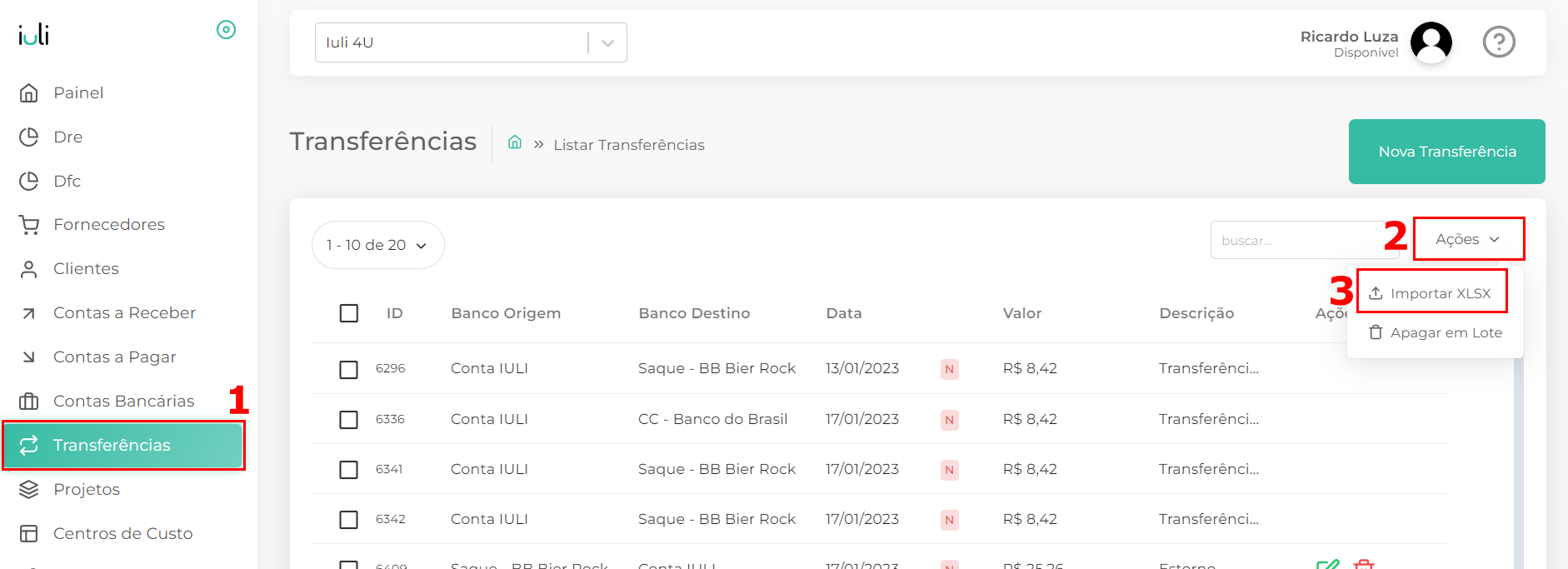 - Como excluir Transferências em lote