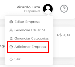 1.Clique no menu de cadastro de empresa e gestão de usuários, localizado no canto superior direito da tela.