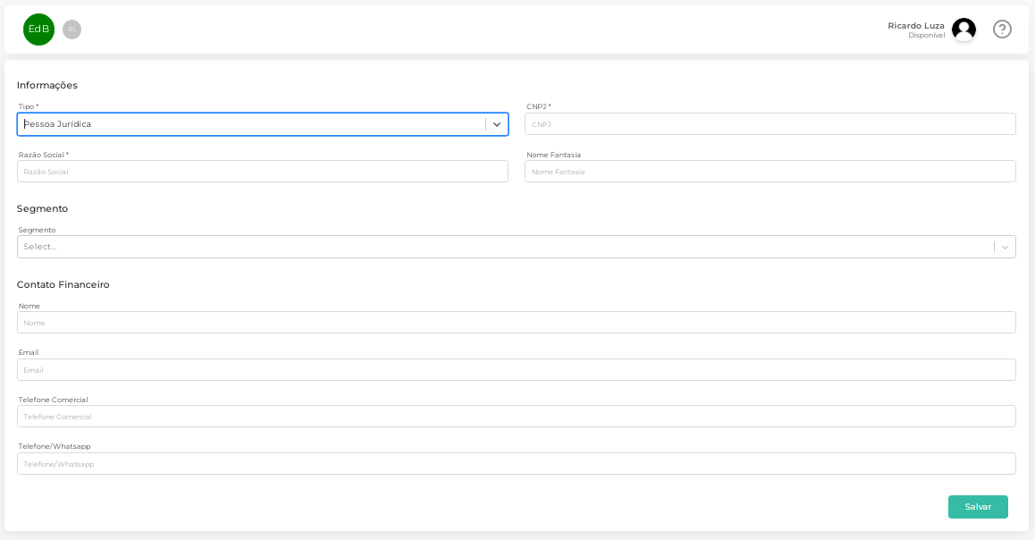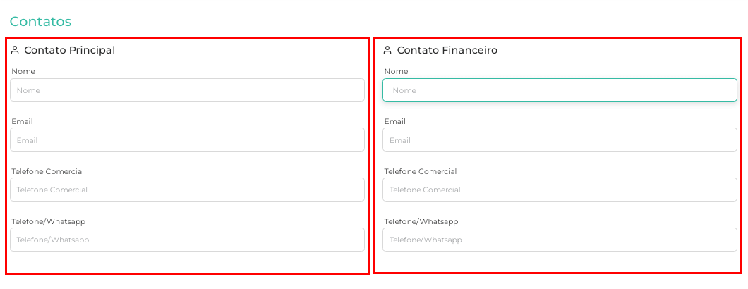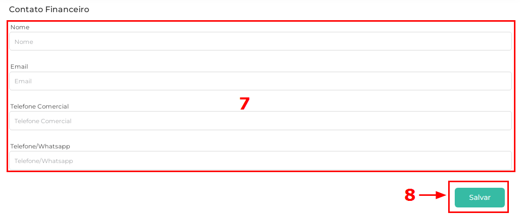 7.No campo Contato Financeiro preencha os dados referentes ao responsável.