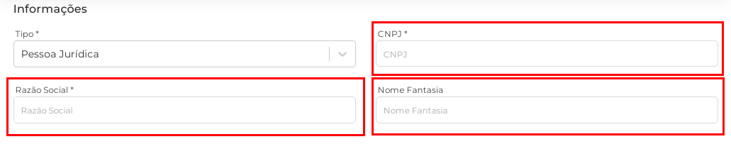 5.Preencha os campos CNPJ, Razão Social e Nome Fantasia de acordo com o Cartão CNPJ da empresa.