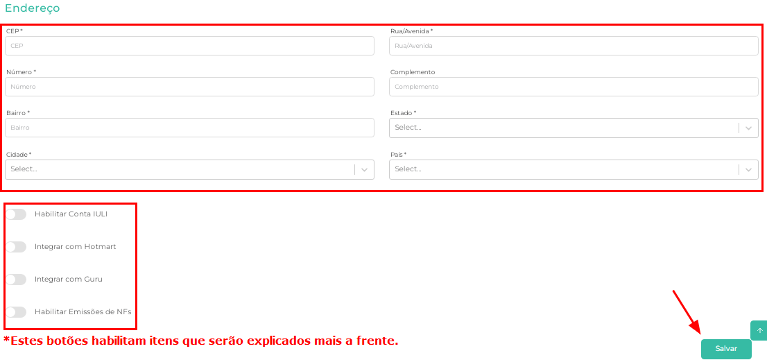 11.Preencha os dados de endereço da empresa e clique em Salvar.